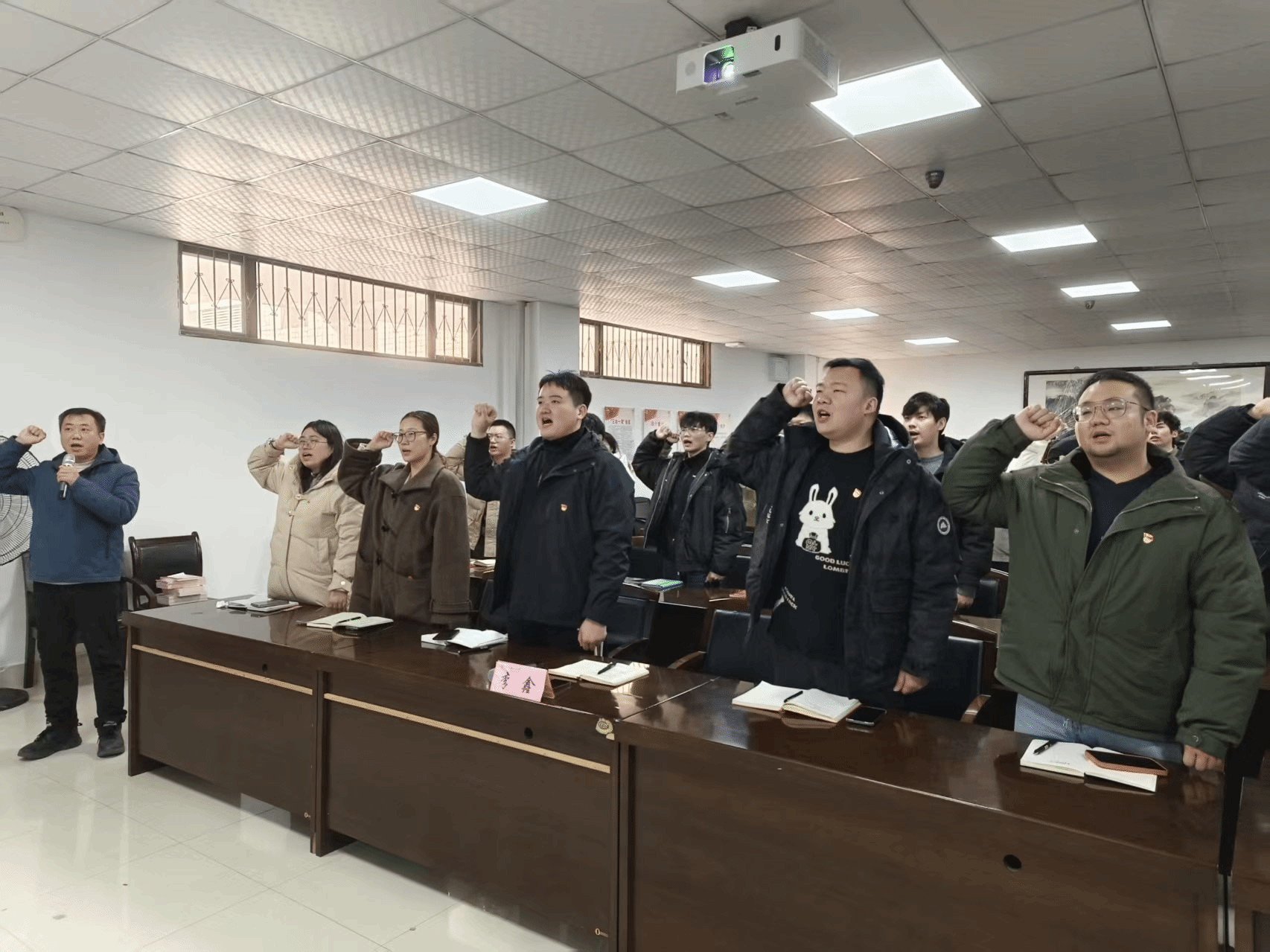 近日,我院在鸿志楼B310举行2025年新发展党员宣誓大会暨宿舍授牌仪式。院党委书记李鑫,各学生党支部书记,以及69名新发展党员参加仪式,学院学生第八党支部书记王亚玲主持仪式。
