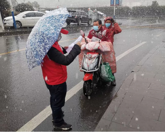 经过连续五天不断地申请后,我终于被批准参加一次志愿执勤任务。虽然屋外大雪纷飞,但我的内心仍旧激动不已,这是我第一次参加公益志愿活动也是第一次为社区人民服务。穿戴好保暖衣物和口罩后,我来到了城西社区卡口。