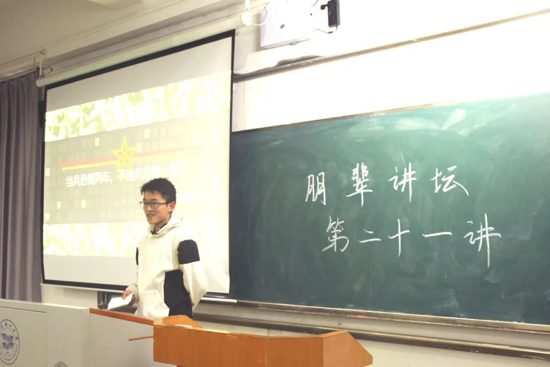 第二十一场中,刘奕池分享了杨绛先生的生平,并向同学们推荐了《我们仨》等著作;林炳琛讲述了他的就业故事,分享了求职过程中的经验;丁科介绍了自己入伍期间的丰富经历与感受,号召有意向的同学应征入伍。