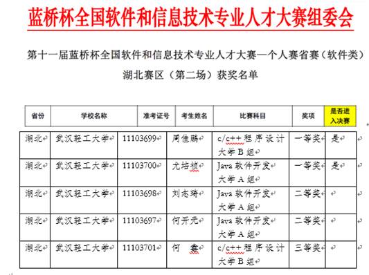 近日,第十一届“蓝桥杯”全国软件和信息技术专业人才大赛省赛成绩揭晓,我院选派学生参加了C/C++程序设计、Java软件开发组别的比赛,共荣获2项一等奖,2项二等奖,1项三等奖。