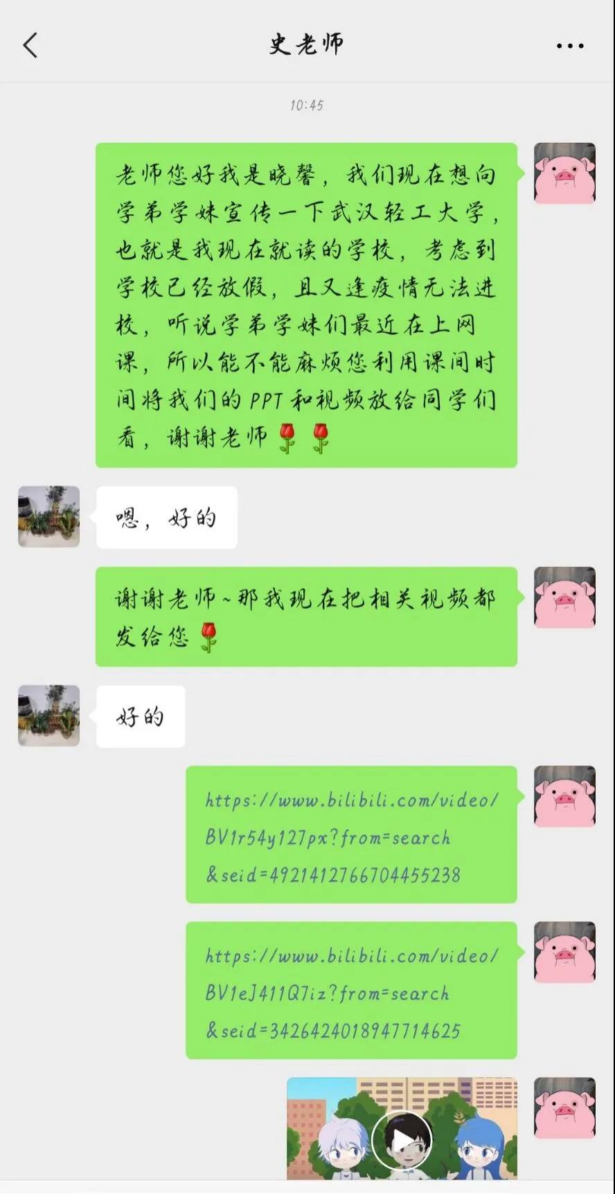 为积极响应学院“我把最美轻工大带回母校”社会实践活动,我向烟台市青华中学18级高三同学进行了招生宣传。由于学弟学妹们已经放假在家上网课,我首先与高中时期的班主任取得联系,并请求他帮忙在同学们课间休息时播放学校的宣传视频及宣传画册,班主任很热情地答应帮助我。