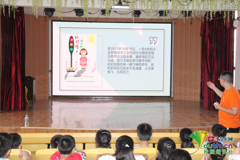 图为午晨旭讲述交通安全事故案例。中国青年网通讯员 余笛 摄