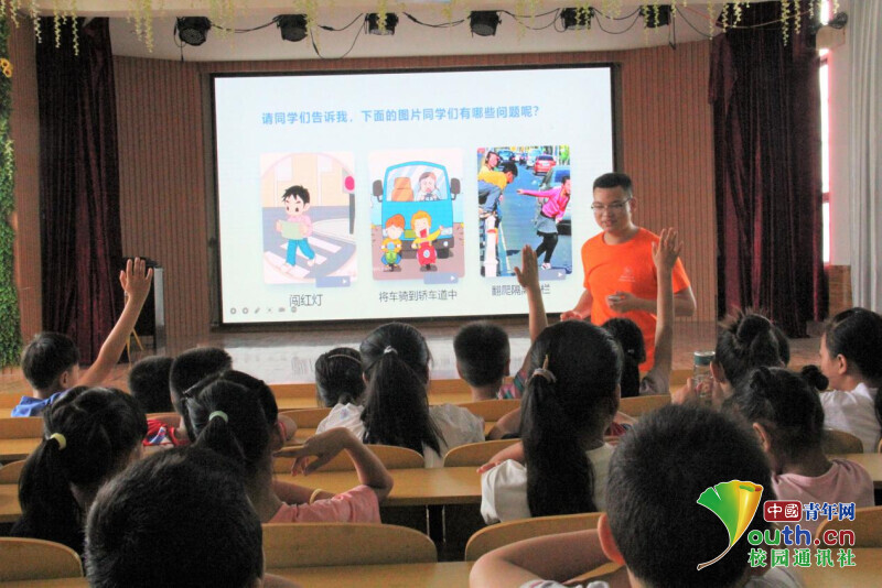 通过支教团队合作演出的情景剧,午晨旭将“安全”引入课堂。剧中,7名成员分别遇到的拐卖、溺水、交通、饮食、火灾等安全事故,让同学们认识到了身边存在的安全隐患。
