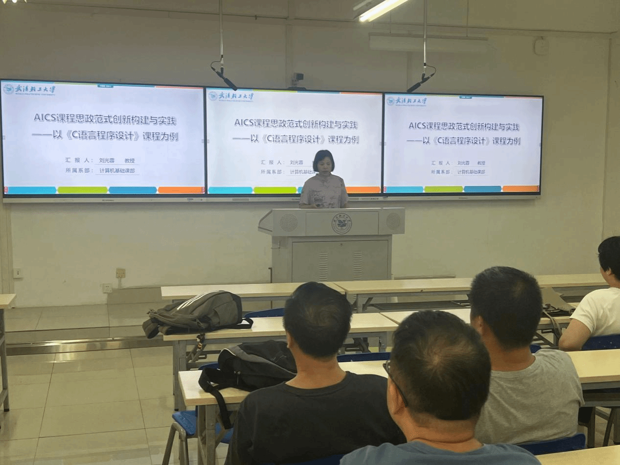 2025年9月11日下午,美高梅MGM电子娱乐游金银湖校区鸿志楼B203智慧教室,计算机基础课部与公共数学课部全体教师齐聚,聆听刘光蓉教授“AICS课程思政范式创新构建与实践——以《C语言程序设计》课程为例”的专题分享。