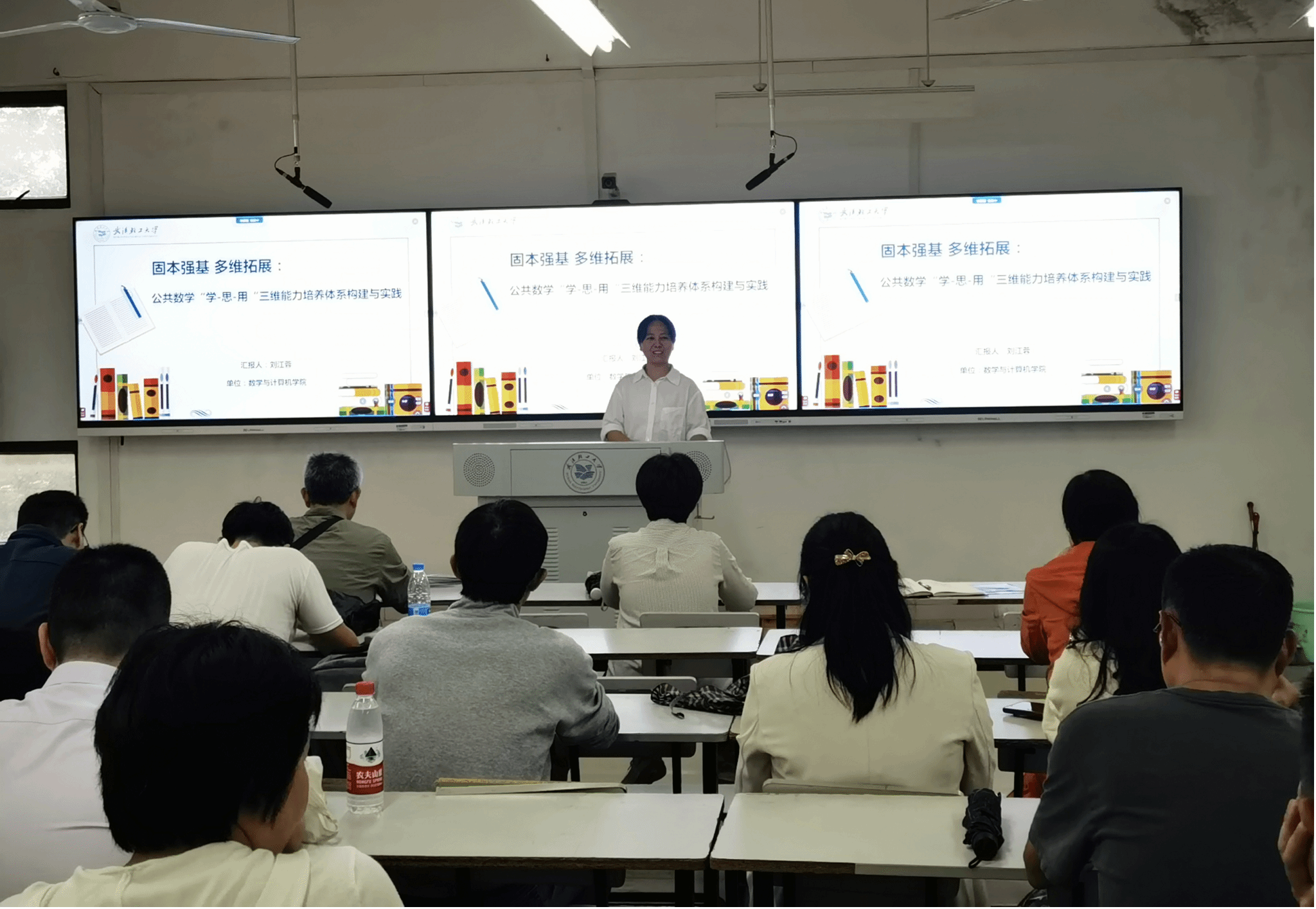 9月25日下午,美高梅MGM电子娱乐游在金银湖校区鸿志楼B201智慧教室举办公共数学“学-思-用”三维能力人才培养体系构建与实践交流会。学院公共数学课部与计算机基础课部教师齐聚一堂,聆听刘江蓉老师的专题分享。